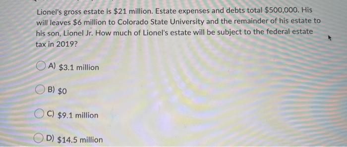 Solved Lionel S Gross Estate Is 21 Million Estate Expenses Chegg Com